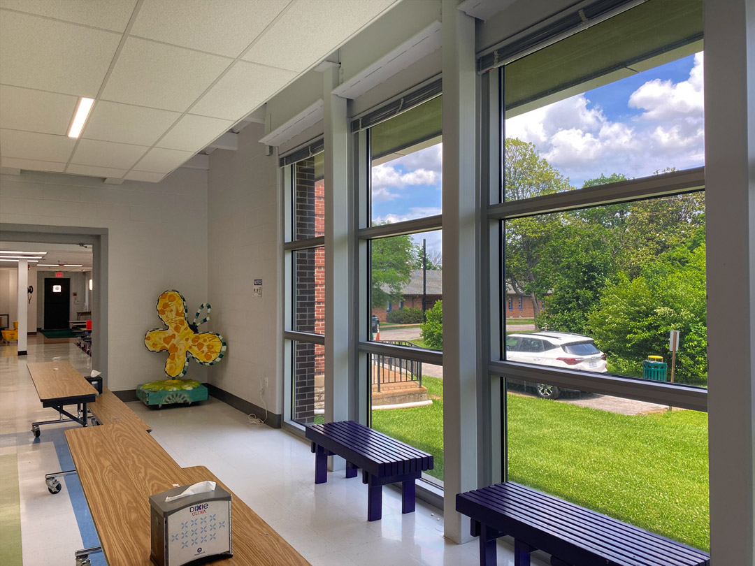 Building from HKW’s campus Master Plan for North Side Community School, two projects were completed in 2020 as the first pieces of its implementation, the Cafeteria Addition and a new Classroom Building. The cafeteria addition and minor existing kitchen re-planning were added to the current cafeteria building to allow more table space and better serving efficiency. The addition also is designed as an ICC500-compliant storm shelter, the first storm shelter for a public school designed within the city of St. Louis. HKW planned the addition to be seamless in its relation to the other campus buildings and be undetectable as a storm shelter through the use of impact-rated curtain wall.