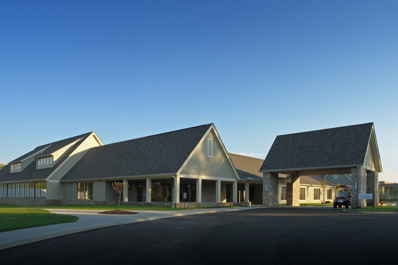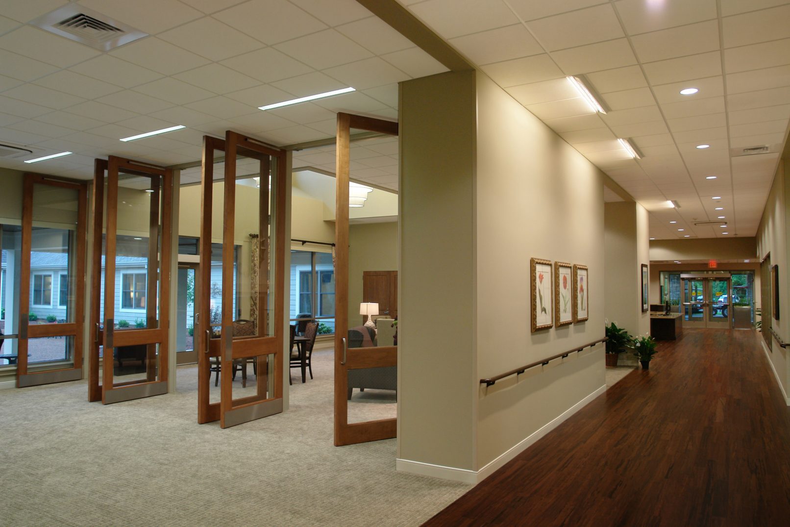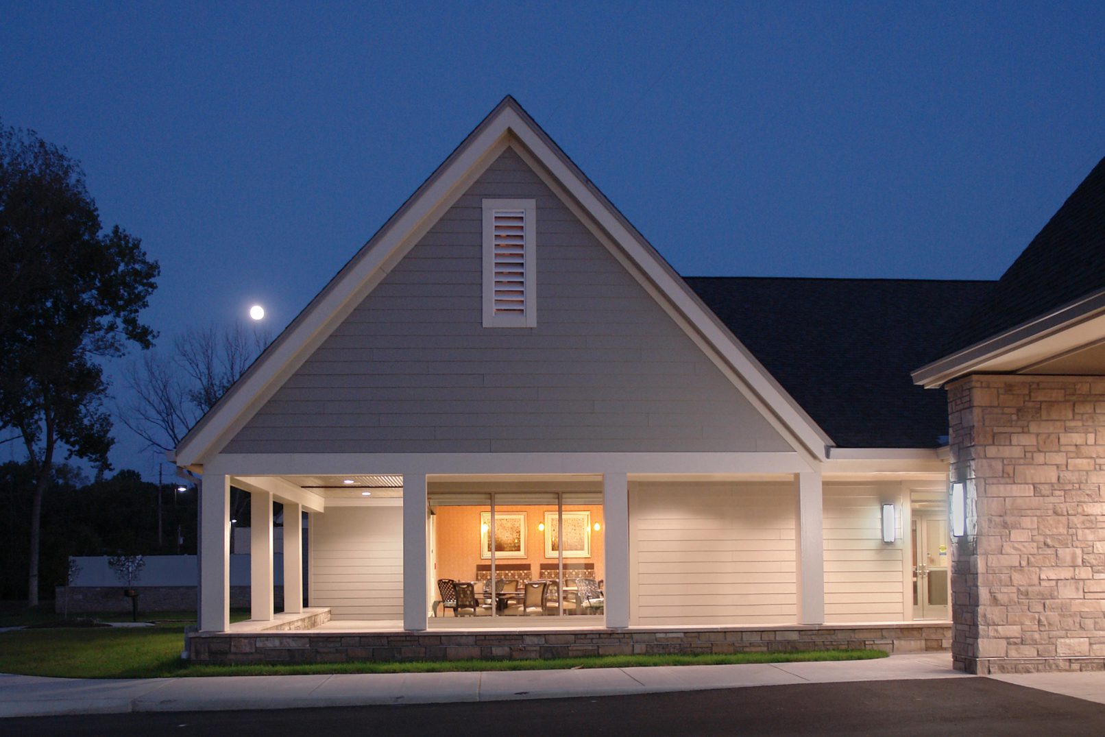 This 60,000SF facility accommodates 62 beds within four neighborhood communities. Each neighborhood is self-sufficient with living, dining, and nursing functions. The neighborhoods are arranged around courtyards in order to shorten corridor lengths and maximize the amount of daylight illuminating the interior. The Rehabilitation Center will be used by residents and outpatients. The facility is conceived to serve patients for shorter terms. It targets people of all ages who have physical rehabilitation needs that can’t easily be met at home, such as persons who are recovering from surgery.